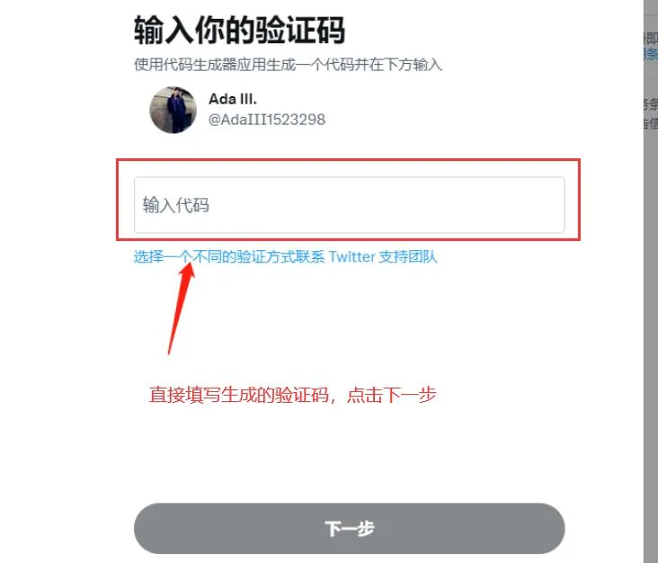 6、复制当前验证码,六位数字。再到X验证码输入界面,粘贴验证码,点击下一步,就可以成功登录了。